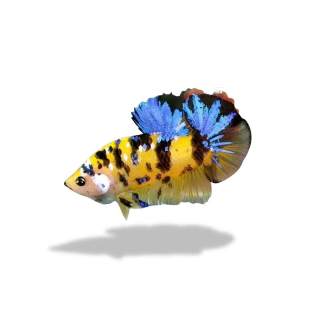 Cupang plakat multicolor yellow base adalah jenis ikan cupang dengan ekor pendek, dan memiliki perpaduan empat warna gelap dan terang di tubuhnya, dengan warna dasar kuning.