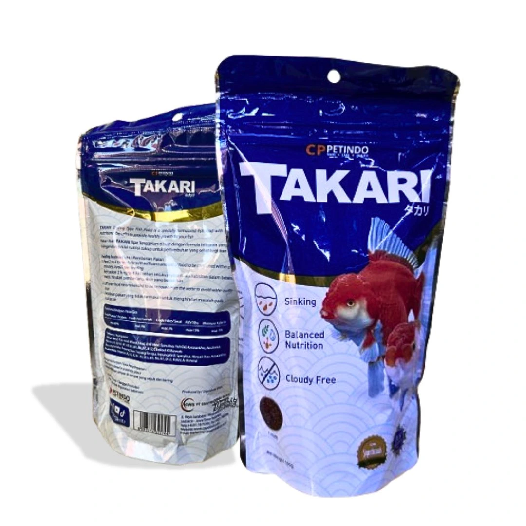 Pakan ikan TAKARI Tipe Tenggelam dibuat dengan formula istimewa yang mengandung nilai nutrisi cukup untuk pertumbuhan ikan hias.