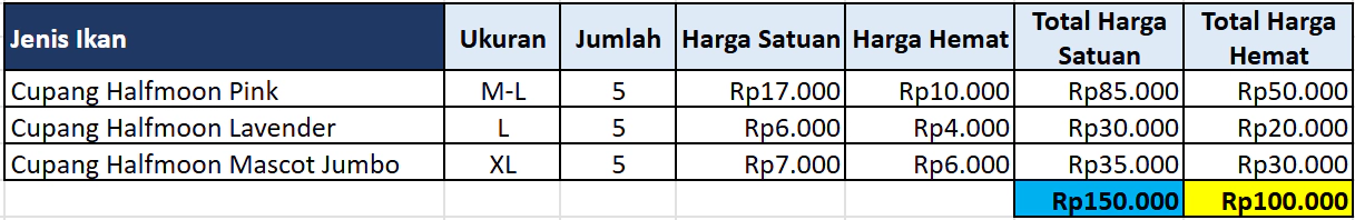Mulai Rp32.000Cupang Halfmoon Betina